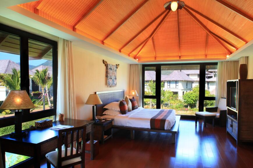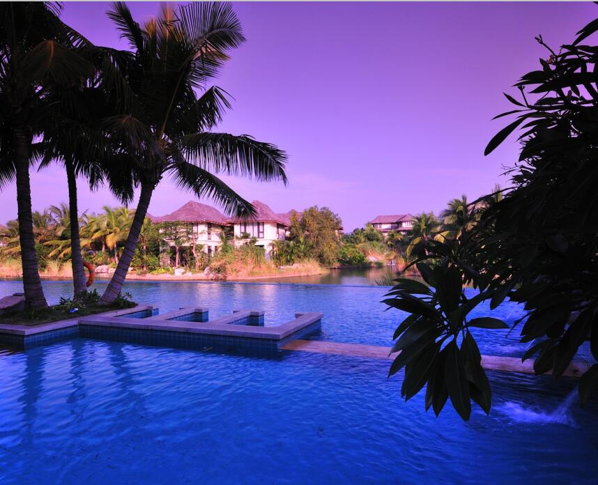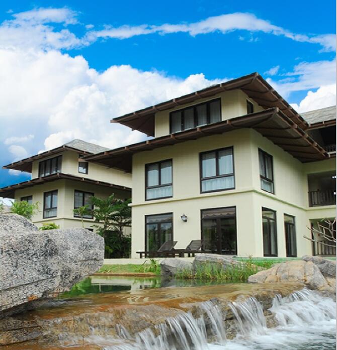 酒店占地200亩,绿化率71%,由108栋园林别墅和1栋会所组成,共有9种不同户型的单体别墅。