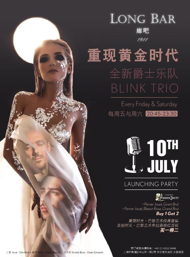 全新爵士乐乐队BlinkTrio,登场上海外滩华尔道夫酒店传奇廊吧。每周五及周六夜晚,为宾客现场演奏经典爵士乐和时尚曲目,于7月10日造访廊吧的宾客,可享…