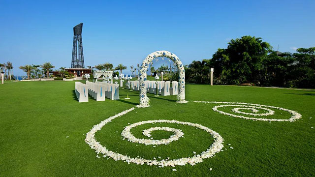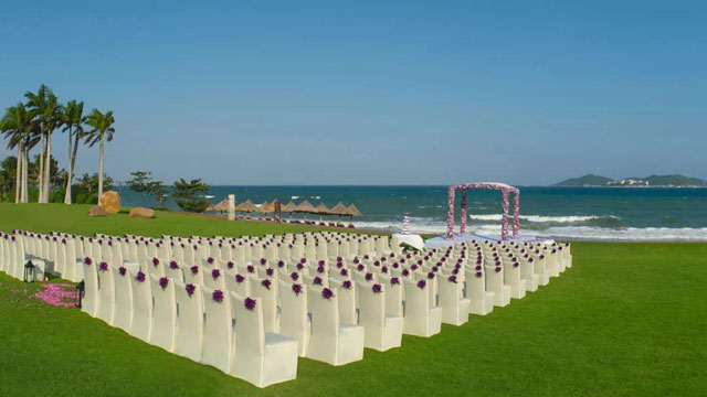 面积达4000平方米的滨海国礼草坪气度非凡,是理想的私人及大型接待、婚宴、生日、周年庆、车展及晚会活动场地。