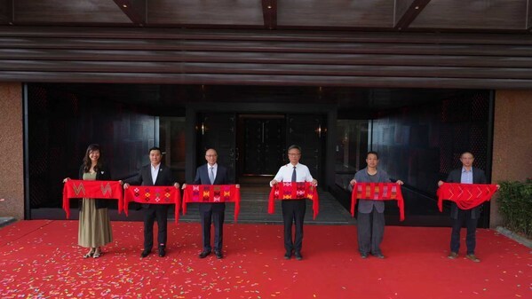 开业盛典以摩梭传统"系花腰带"仪式拉开帷幕,摩梭长者将象征祝福的花腰带系于宾客腰间。随后的剪彩环节中,嘉宾们共同剪断纹样各异的花腰带:稻浪寓意丰饶、铜匙代表守护、花瓶承载祈福、摇鼓呼应欢庆、波洛花象征治愈、闪电传递敬畏——这些源自摩梭生活的鲜活符号被永久珍藏于酒店,成为文化与空间相融的永恒印记。