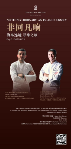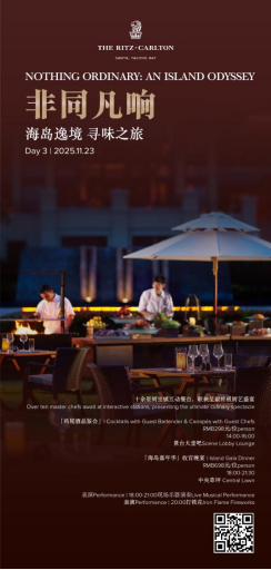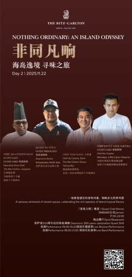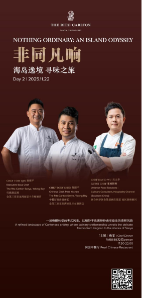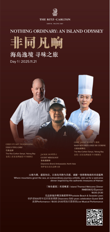 2025年11月21日至23日,金茂三亚亚龙湾丽思卡尔顿酒店将开启名为「非同凡响:海岛逸境 寻味之旅」的年度盛事。这不仅是一场美食节,更是一趟跨越山海、融汇东西的感官奥德赛——四位来自世界各地的星厨,一位传奇调酒师,与一座海岛的灵气相融,共谱一阕献给当代味觉的叙事诗。