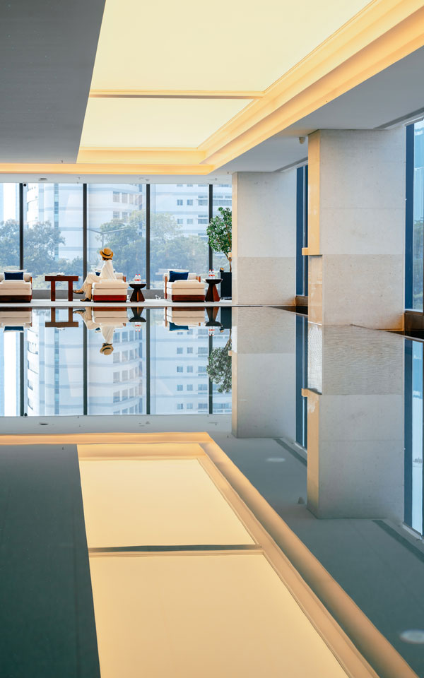 酒店由香港郑中设计事务所(CCD)操刀,以“无限想象的魔方都市”为设计理念,巧妙融合运动元素与现代生活场景。223间客房及套房配备专业运动康复中心、室内泳池与健身房,实现健康管理与舒适居住的完美平衡。