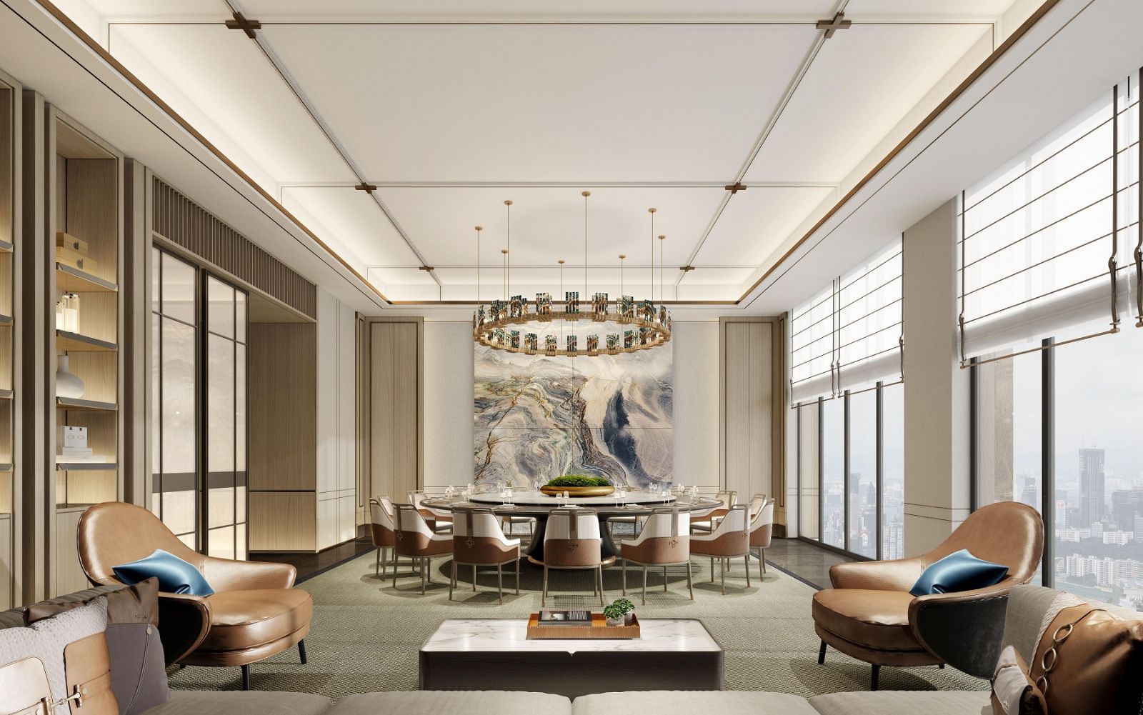 酒店27层茶室内部,以“新中式×高空城景”风格精心雕琢,每一处陈设皆彰显独特雅韵。古朴的中式茶桌搭配柔软坐垫,墙上悬挂意境悠远的水墨画,与窗外繁华的城市景观交相辉映。阳光透过巨大的落地窗洒落茶桌,光影交织间,营造出宁静而惬意的氛围。茶艺师们身着传统服饰,手法娴熟地为宾客泡制香茗,从茶叶精选到水温掌控,每个环节无不展现专业与用心。在此,时间仿佛放缓脚步,宾客可暂忘外界喧嚣,沉浸于片刻的宁静与美好,尽享茶香带来的愉悦与放松。