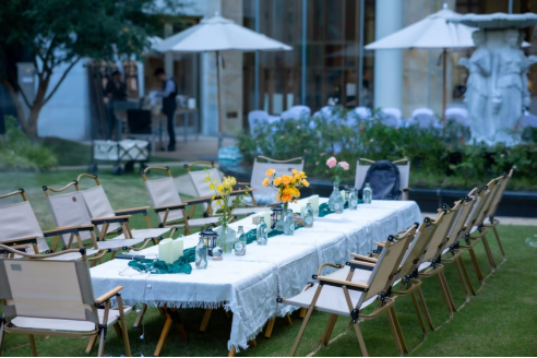 酒店拥有逾2616平方米的「遇・园」户外场地,融汇欧式园林风华与自然意境,是一处彰显格调与艺术气息的露天场域,适宜举办各类主题晚宴与户外庆典,让岁末欢聚在星空与自然的映衬下更显诗意。
