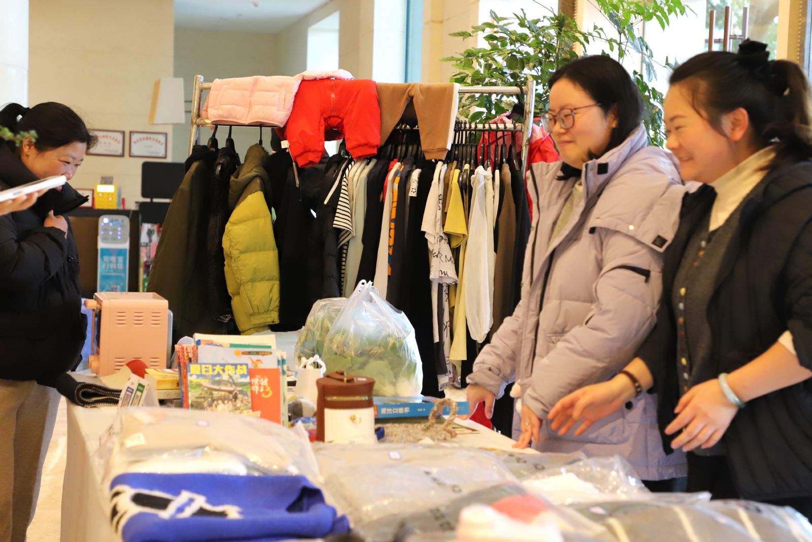 活动现场洋溢着热闹且温馨的氛围。酒店及日油化工的员工们积极响应,纷纷将家中精心挑选的闲置物品包括书籍、服饰、手工自制美食、文具、工艺品、家居用品、儿童玩具等等,以部门为单位布置成一个个别具特色的爱心售卖台。 员工们不仅充当“售货员”,热情介绍物品,更踊跃参与选购,以实际行动传递爱心。现场往来络绎不绝,叫卖声、欢笑与交谈声交织。点滴善意,如涓涓细流于虞城江畔汇聚,共同谱写了一曲动人的公益乐章。