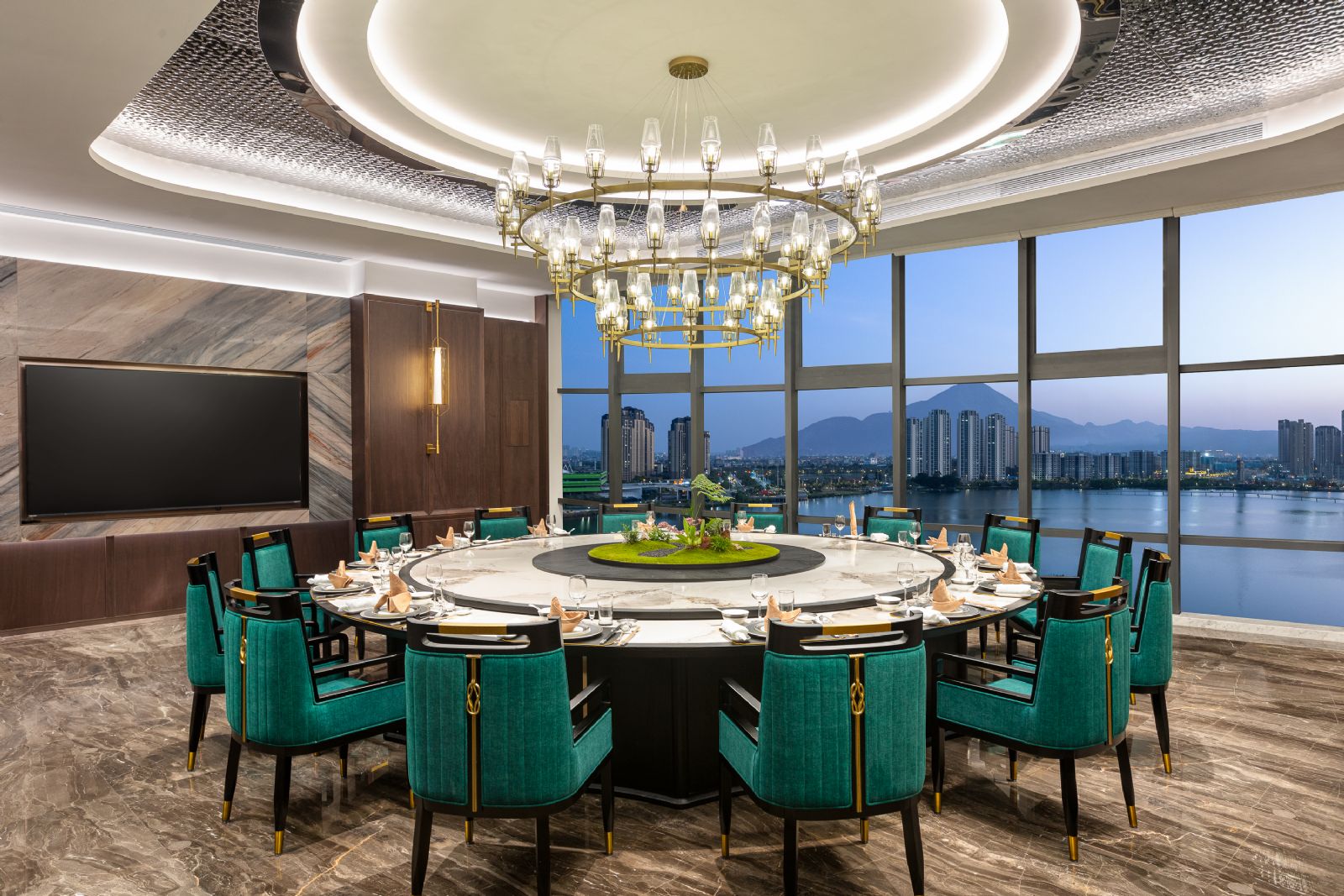 中餐厅位于酒店二楼,餐厅设有独立的9间不同大小间的包房,透过全幅落地窗即可沐浴惬意暖阳,美丽的玉湖面,将自然与美食并赏。星级厨师团队采用优质的食材原料,精心烹饪,打造现代与摩登的中国餐饮新体验。展示粤菜、闽菜和本地特色菜,荟萃本地时令食材,海派珍馐,带给您一抹灵活鲜动的用餐体验。