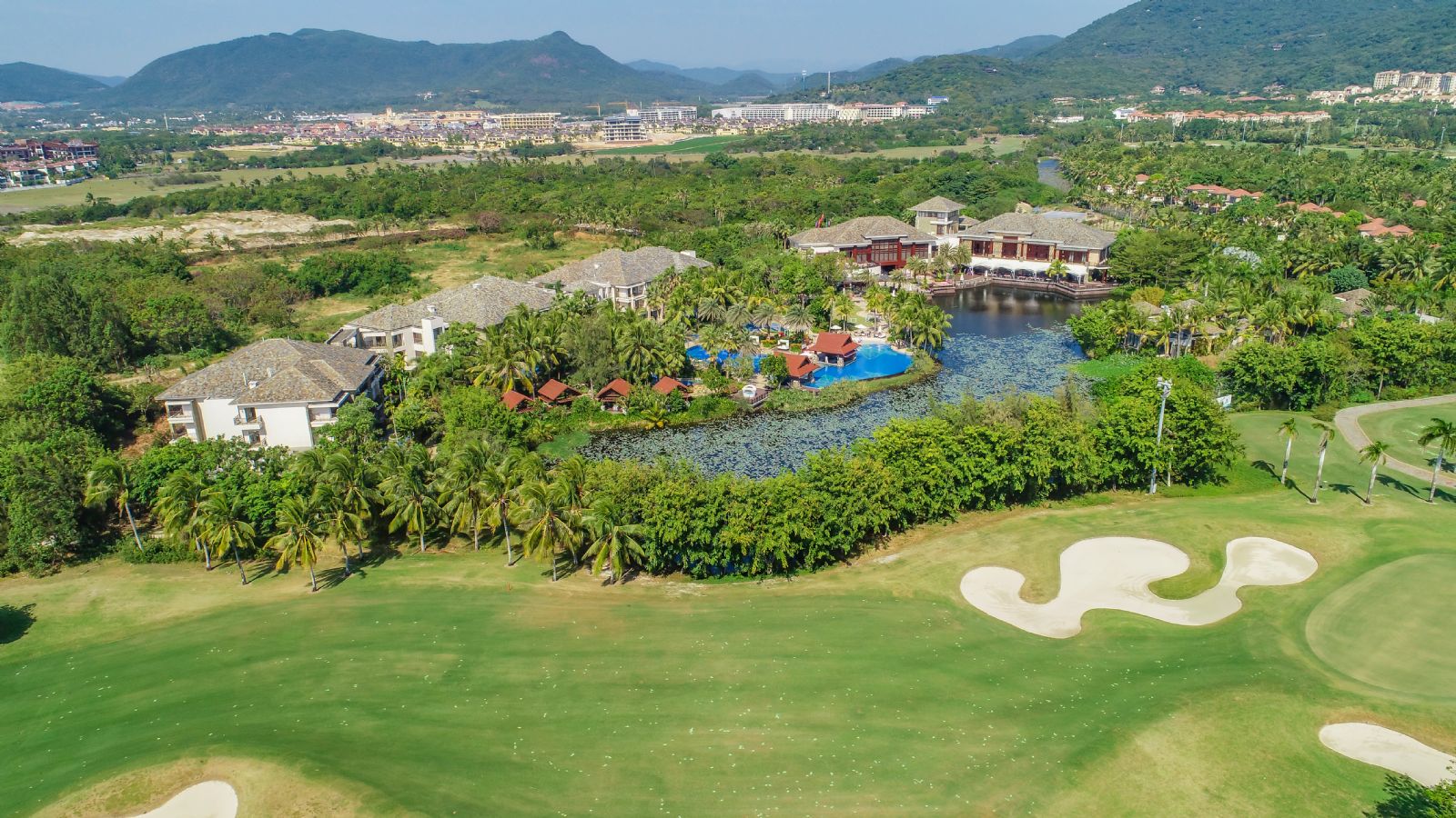 整个别墅区迂回曲折地分布在湖水环绕的小岛上,108栋精美别墅及110间主楼客房掩映于东南亚风格园林与高尔夫景致之中。