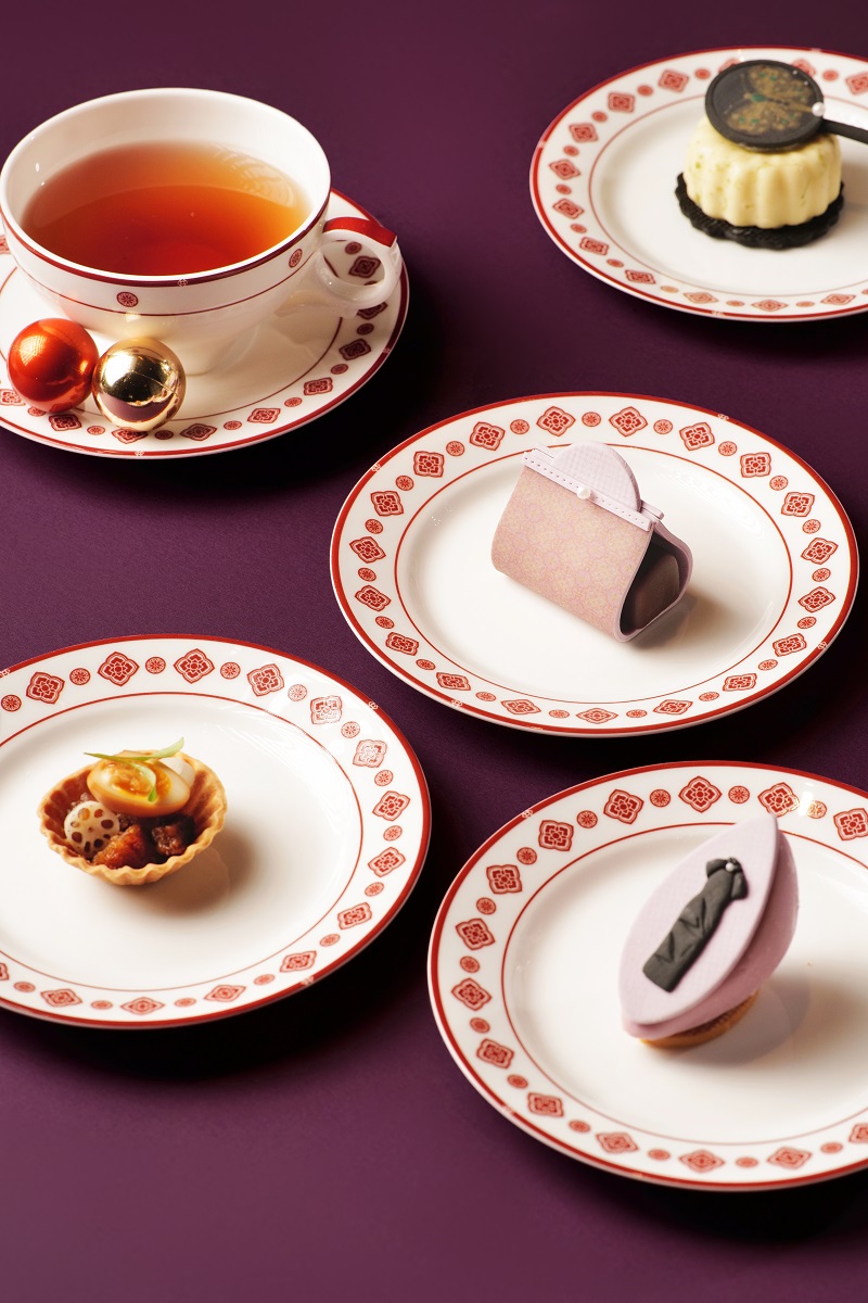 苏州丽思卡尔顿酒店携手上久楷共同打造的「锦绣姑苏」联名下午茶,包含 4 款非遗主题定制甜品、4 款咸点、2 款经典司康及配套果酱,另为宾客提供 2 位咖啡或西式茶的饮品选择,每套专属附赠宋锦小狮子限定盲袋一份。在主题甜品的创作上,酒店饼房厨师长 Sandy 带领厨师团队深度解构宋锦的纹样美学与文化内核,将千年织造工艺的经纬韵律、经典纹样凝于舌尖,实现西式技艺与中式雅意的完美融合:奶油话梅芝士搭配抹茶甘那许,复刻苏州 “蜜渍雕梅” 的古韵,形似一柄可食用的 “诗意画扇”;法芙娜巧克力与手熬车厘子酱融入莎布雷酥饼,以宋锦菱纹定胜纹样塑造成精巧手包,碰撞出法式精致与江南华美的双重质感;立体旗袍造型的外交官奶油草莓罗勒,则将异域草本与东方风土相融,在舌尖铺展流动的江南仕女图。每款甜点皆以宋锦经纬为骨,在西式技艺中暗藏中式对称雅意,实现味觉与视觉的双重享受。