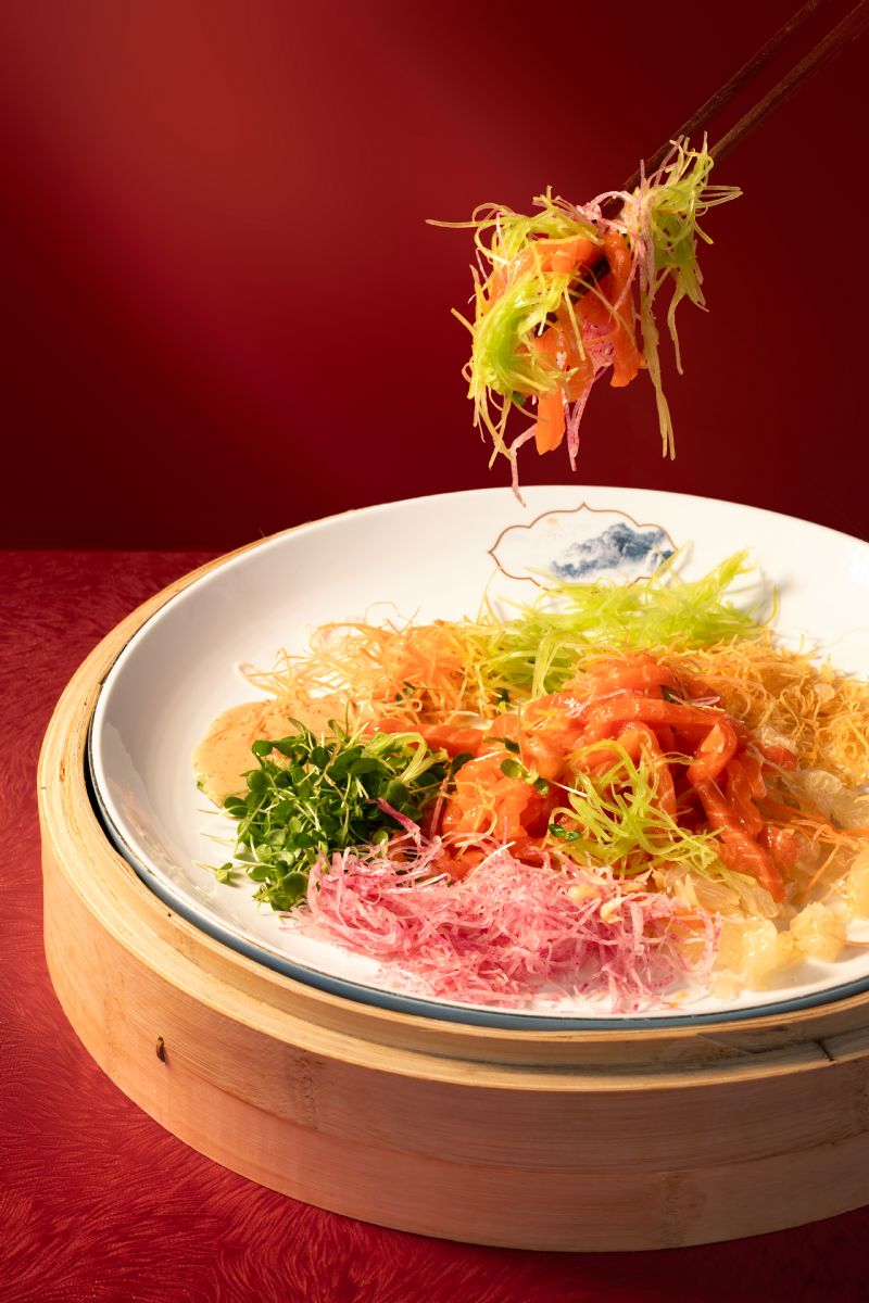 七彩鱼生高高捞起