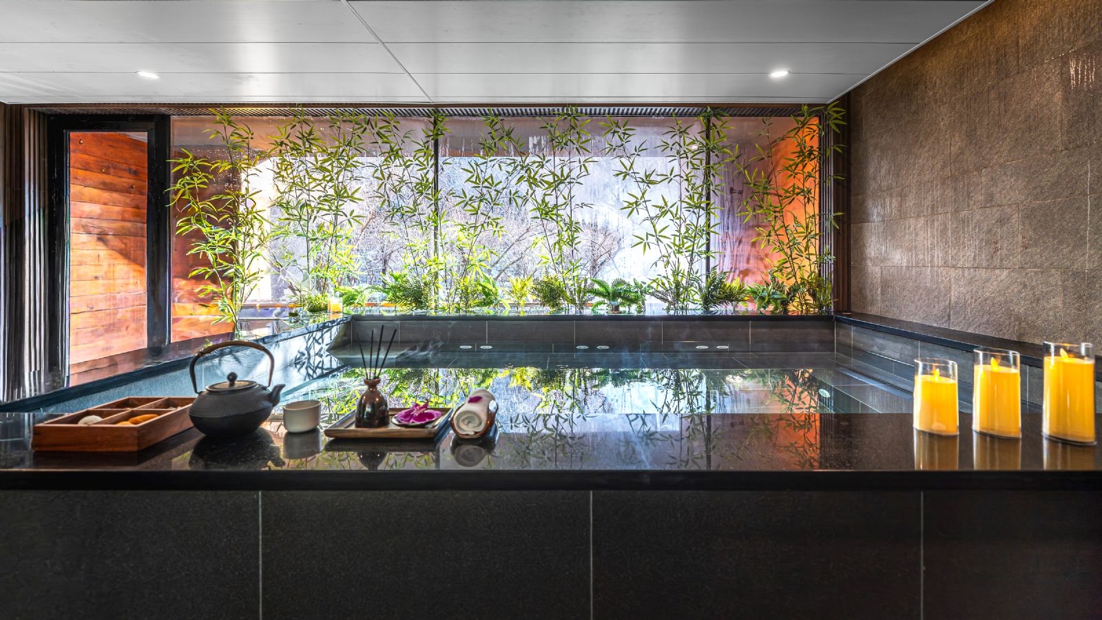 公社汤池以“山新盎然,温润有道”为理念,巧妙利用其得天独厚的地理环境。池水浮动,仿佛汲取了长城山脉的灵气与岁月的宁静。浸润其中,远眺层峦叠嶂,细赏幽芳翠影,身心在温润池水的包裹与开阔山景的涤荡中得到深度松弛与焕活。这里不仅是肌肤的疗愈所,更是远离都市喧嚣、对话古老文明、重获内心平和的诗意栖居地。