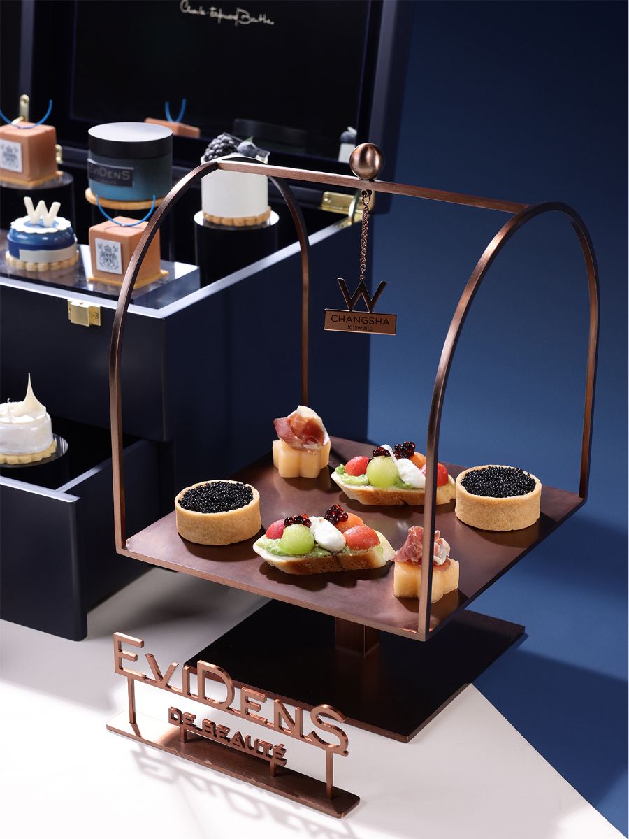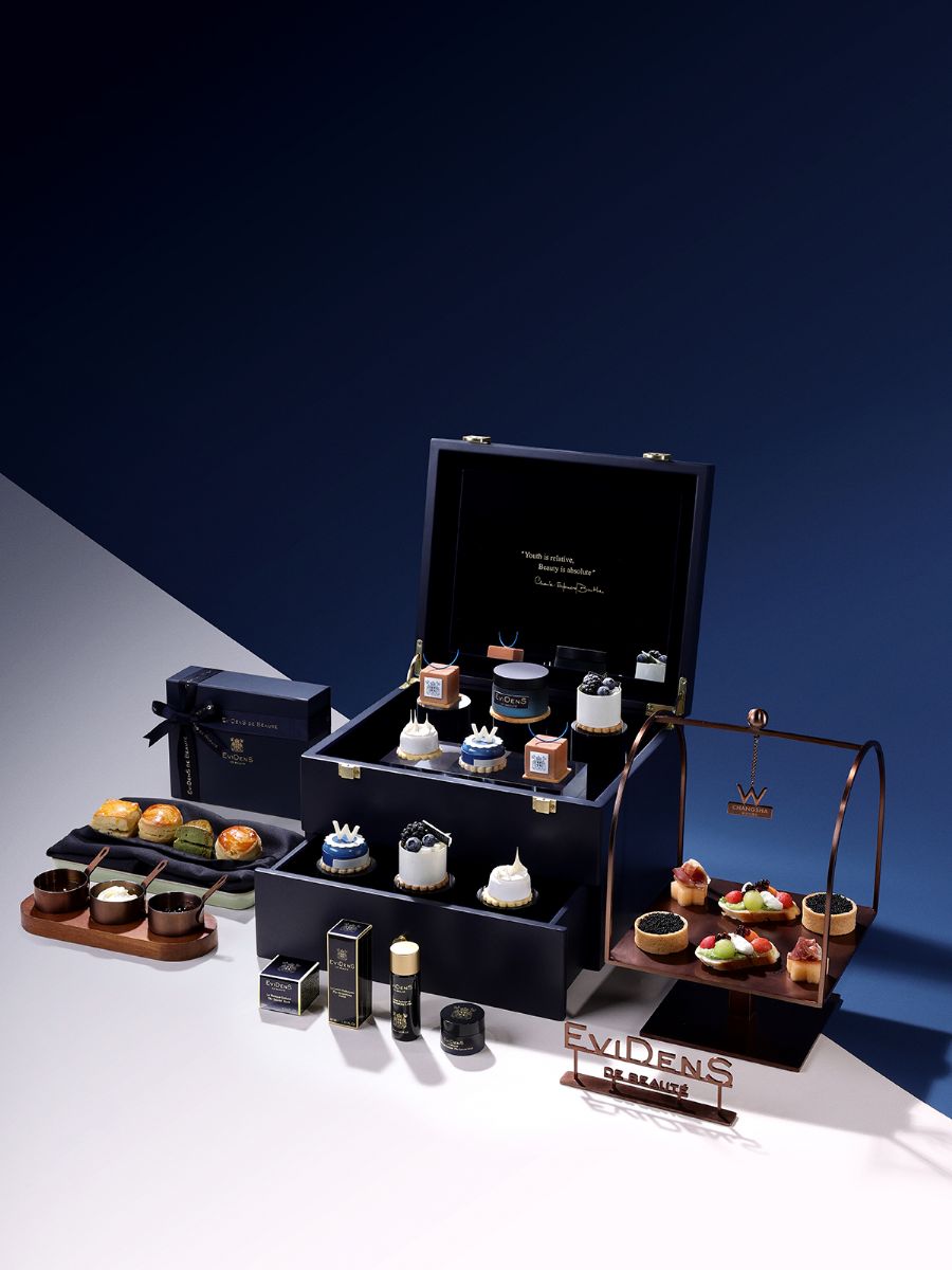 当南法护肤美学邂逅星城潮流地标,在新年伊始,长沙W酒店以伊菲丹经典天鹅绒蓝色、纯白色和鎏金色为主色调,设计了联名下午茶。甜品以奢华质感的礼盒呈现,如珍贵瑰宝,既体现了W的创意,又将伊菲丹的肌肤哲学通过咸甜交织的味蕾体验传递。