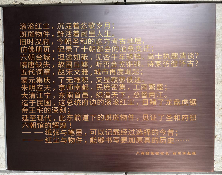 迄于民国,这总统府边的滚滚红尘,目睹了龙盘虎踞帝王宅的深刻;延至现代,此东箭道下的斑斑物件,见证了圣和府邸六朝馆的辉煌!