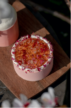 【山楂玫瑰慕斯】用花香与果香碰撞,诠释春日的温婉与灵动。玫瑰啫喱晶莹剔透,带着玫瑰的馥郁芬芳入口清甜;荔枝巴伐利亚奶油绵密温润,荔枝的清甜与奶油的醇厚完美融合;山楂奶酱,酸甜适中为慕斯增添了独特的温润口感,每一口都层次分明,花香与果香交织。