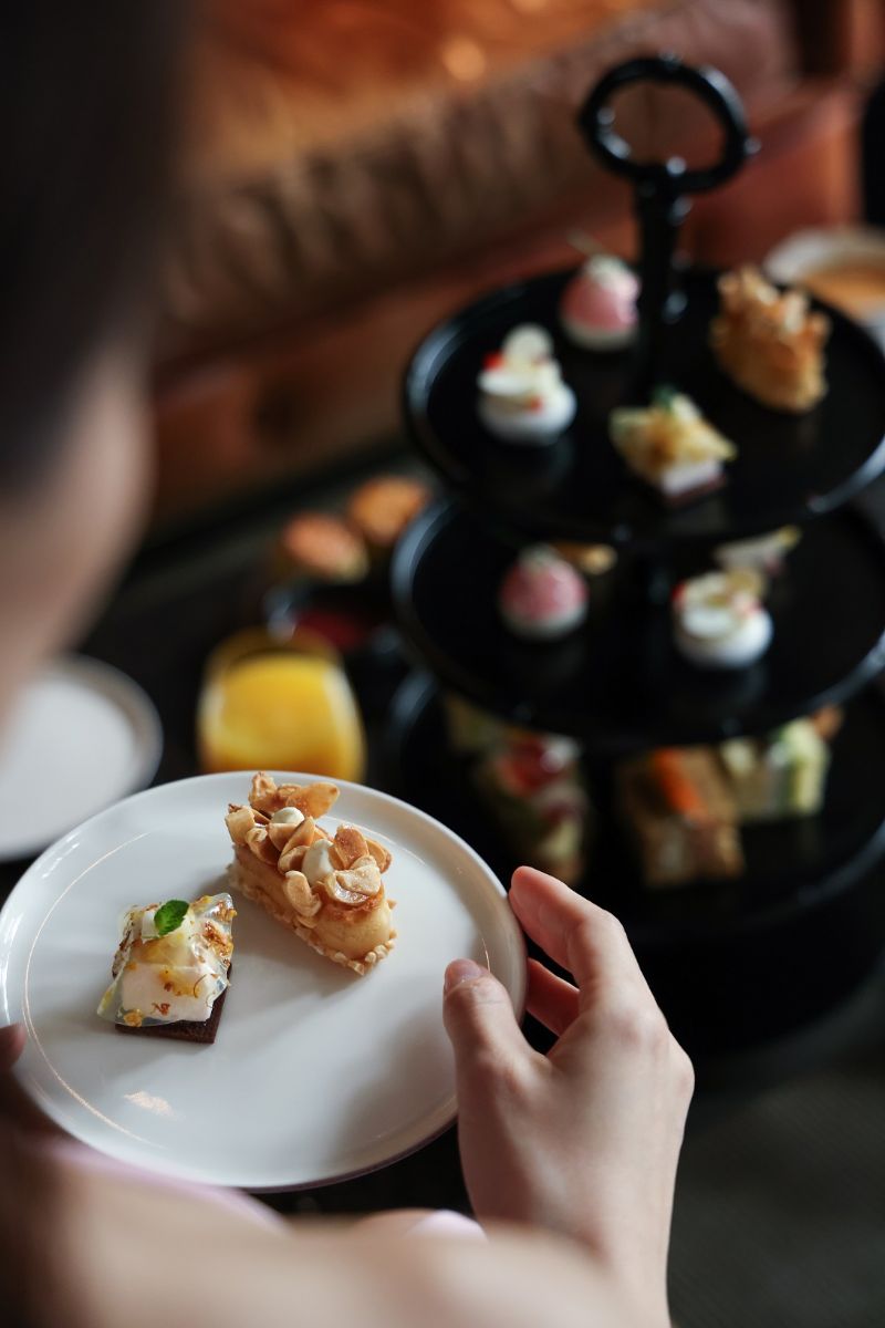 下午茶套餐包含三款风味小食与五款精致甜点,比如:白茶桃子慕斯以轻盈白茶慕斯邂逅清甜蜜桃;柠檬草莓帕夫罗瓦于酥脆蛋白饼之上,缀以明亮柠檬与酸甜草莓;桂花香梨慕斯以桂花花瓣点缀的香梨慕斯,满溢芬芳;杏仁费南雪融汇杏仁馥郁与桧木温暖;伯爵茶司康饼则散发佛手柑的柑橘清香,佐以凝脂奶油与自制果酱。