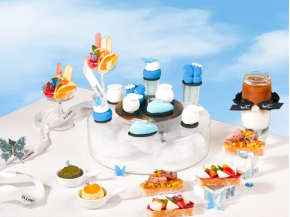 本次联名下午茶以「蝶潮逐悦 摩登同行」为主题,白蓝主色调呼应春日浪漫,融合双品牌蝴蝶元素,甜品与摆盘尽显灵动。套餐定价238元/套,含多款精致咸甜点心,加价19.9元可享碧螺春特调,解锁江南茶香与摩登风味的碰撞。