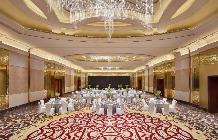 酒店拥有2300平方米宽敞明亮的宴会会议活动空间,其中745平方米的无柱大宴会厅,伴有前厅及特色玻璃天幕厅,至多可容纳500人。另有10个多功能会议空间以夜幕紫为主色,天花板棱边造型寓意“打开天窗说亮话”,并配备高水准视听设备及设施,并提供现场技术支持。经验丰富的会务团队全程提供定制化服务,确保每一场活动高效流畅、灵感迸发。