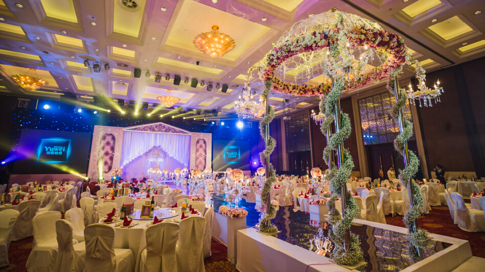 没错,这是一场娱乐圈的婚礼,从新郎新娘到伴郎伴娘和满座宾朋,全部是巨星!似乎是将电影巨幕搬到了婚礼现场,浓重帷幕和绚烂的背景雕刻,一场爱情电影浪漫上映,而我和你,其实都是观众。但是除了羡慕嫉妒,你其实还可以这样做:来温州金海岸开元度假村办婚宴,让你的婚礼百变起来!