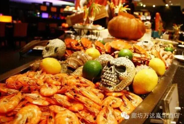 廊坊万达嘉华酒店与您相约万圣节疯狂海鲜盛宴大趴,豪华海鲜让您品尝珍馐美馔、尽享饕餮大餐。在光怪陆离的餐厅内,造型各异的南瓜灯,行踪飘忽不定的幽灵服务生;遍布餐台的“鬼魅”盛宴:南瓜灯、地狱大餐、万圣节特饮……