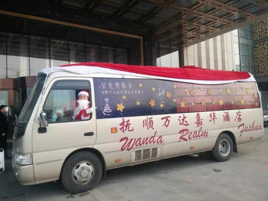 今日,抚顺万达嘉华酒店每年一度的“奔跑圣诞”活动拉开序幕。总经理李香繁女士与酒店管理团队乘坐“圣诞老人”驾驶的圣诞快车,开始了一天的旅程。
