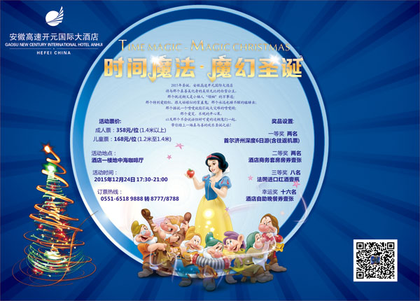 2015年圣诞,安徽高速开元国际大酒店将与那个真善美化身的美丽无比的白雪公主,那个既迷糊又是小矮人“领袖”的万事通;那个特别爱脸红,跟大姑娘似的害羞鬼;那个永远也睡不游(含往返机票)