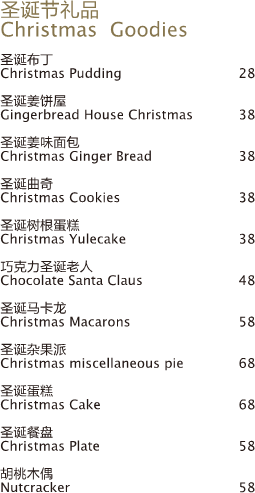 圣诞老人菜单: 人民币888净价供每桌10人享用