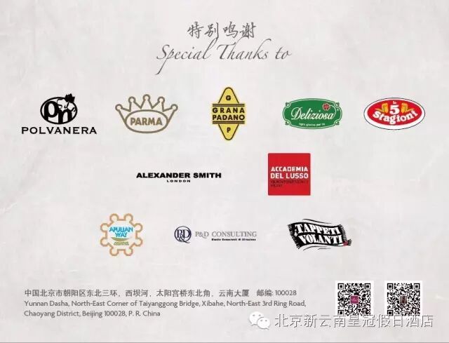 此外,意大利知名帕尔马火腿及帕玛臣芝士品牌Consorzio Prosciutto di Parma & Consorzio Grana Padano形象大使、意大利名厨Massimiliano Esposito的加入,也会为这场盛宴增添新鲜活力,他将为饕餮食客们指导配餐的秘诀!