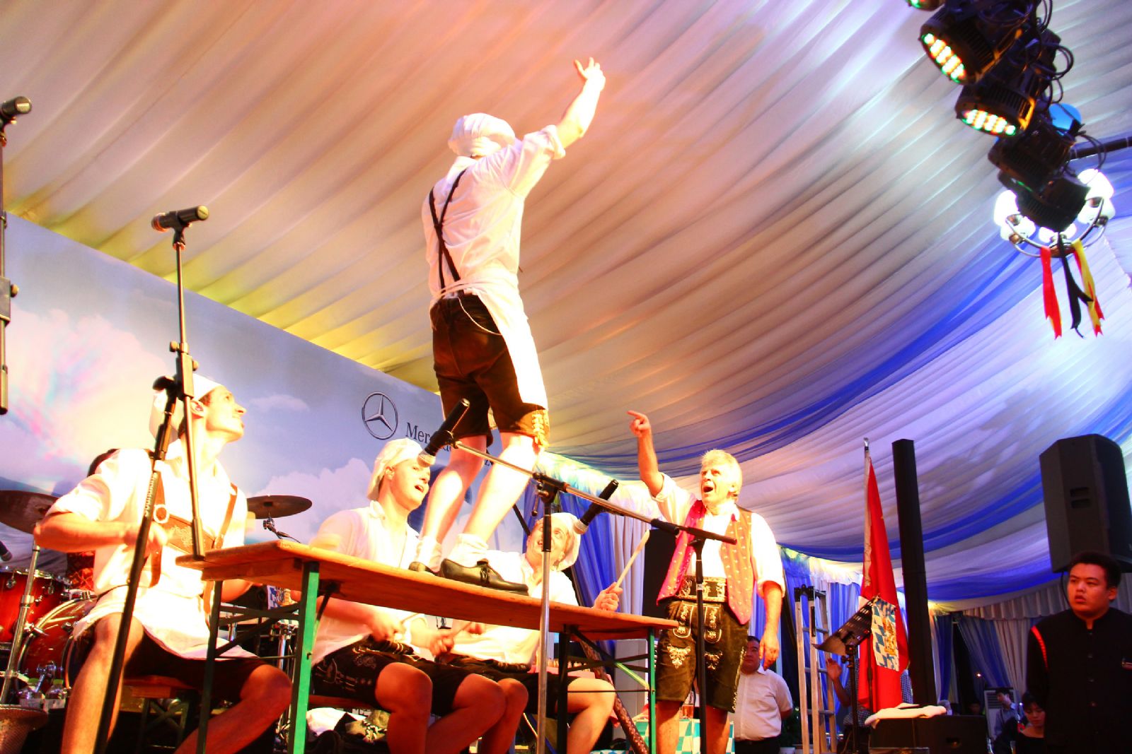 不得不说,除了啤酒节经典祝酒曲目外,不少我们耳熟能详的怀旧华语老歌、时下流行神曲也是这一队德国人演出的法宝。与此同时,全场不停的互动游戏、邀您开怀畅饮的德国扎啤和目不暇接的德式美味,让每一个夜晚激情嗨翻天!
