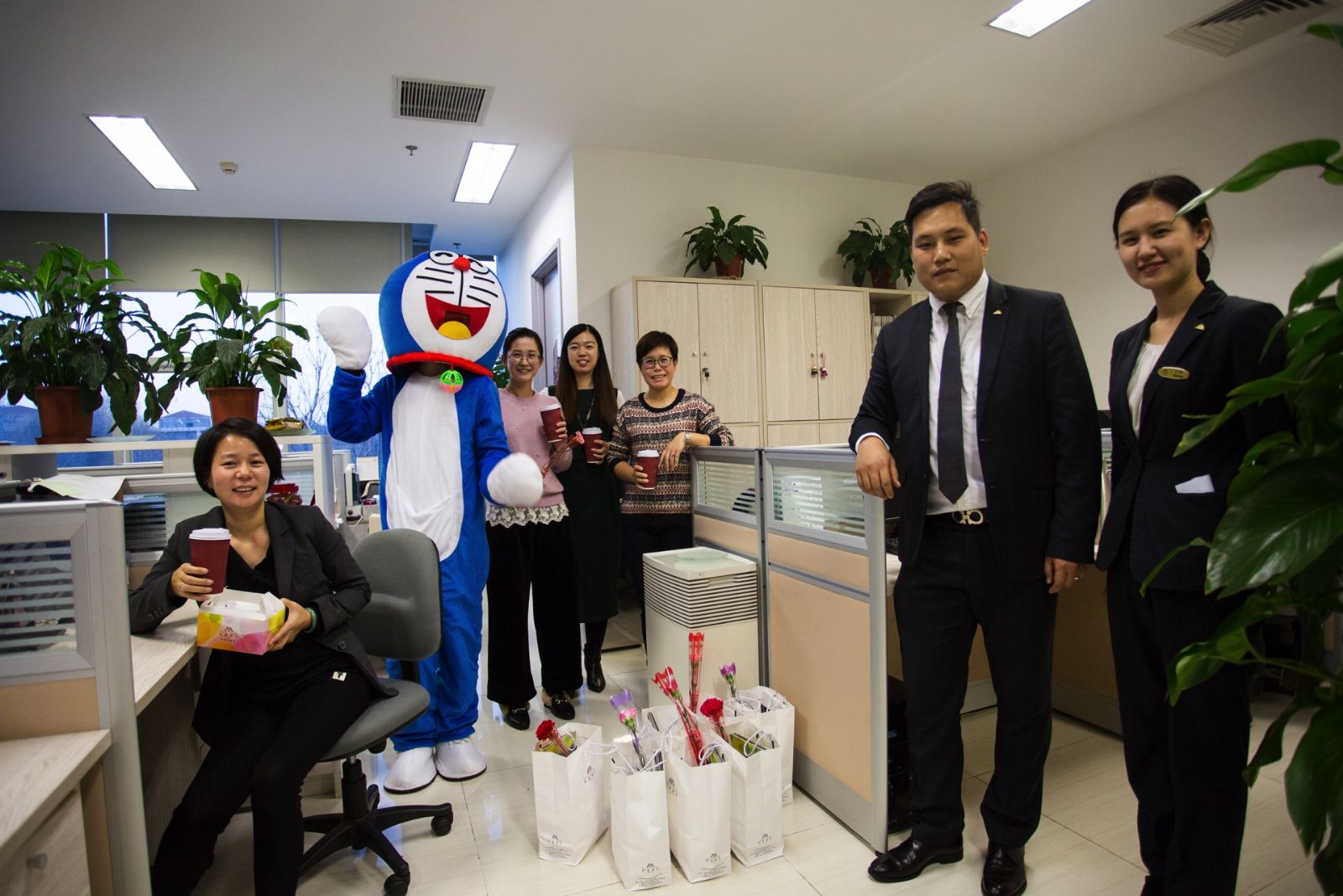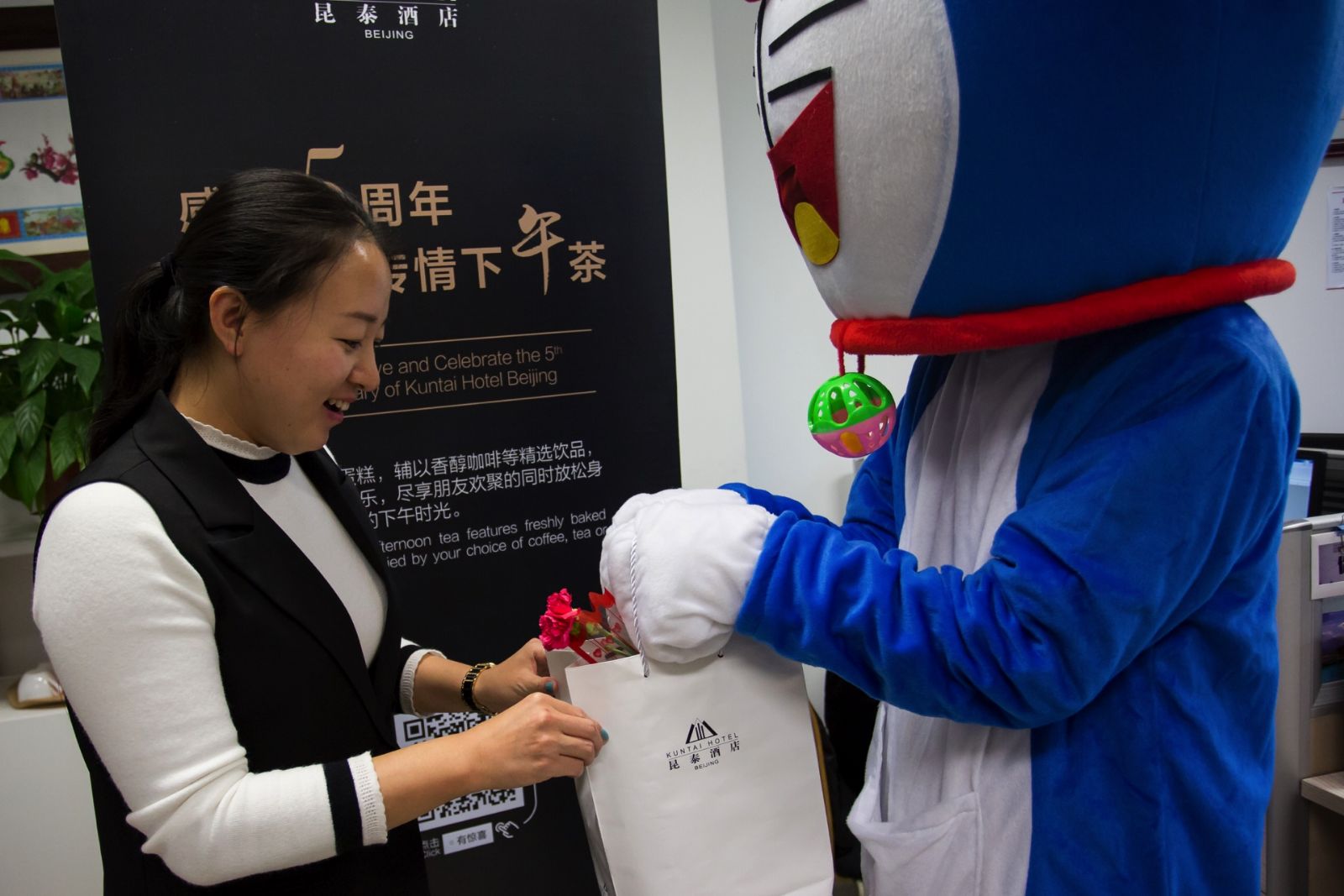 据介绍,此次活动的特别之处在于“传情”,为增强宣传效应,酒店特别选出了两位吉祥玩偶带着酒店新推出的精美下午茶到望京国际国内公司拜访,为那些热爱生活的秘书们送上酒店的一份心意。并且该秘书还可以指定另外一名也在望京地区的好友,由吉祥玩偶将这名秘书的心意传情给自己的闺蜜或朋友。