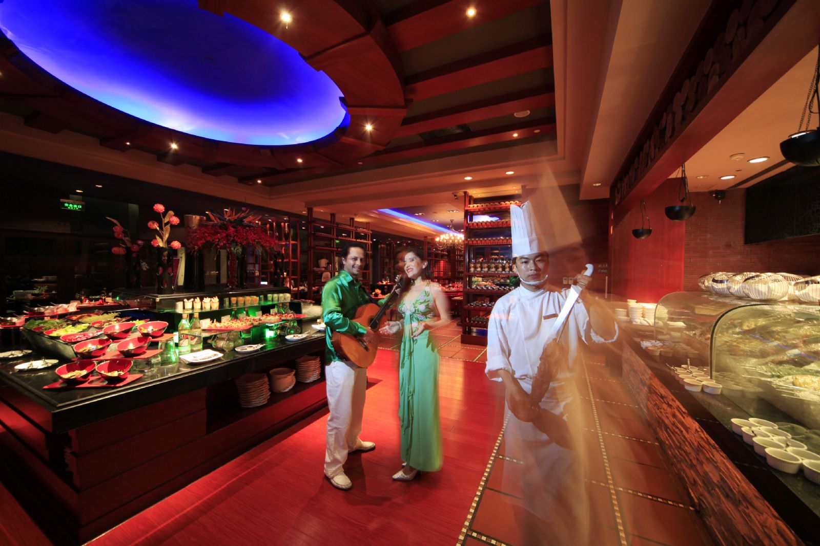 开放式厨房现场制作,空气中氤氲着烤肉的芬芳再配以异域风情浓郁的美食、美景,全场烤肉、甜品、沙拉、水果任食任吃。吃肉才是正经事儿,让您过足巴西瘾!