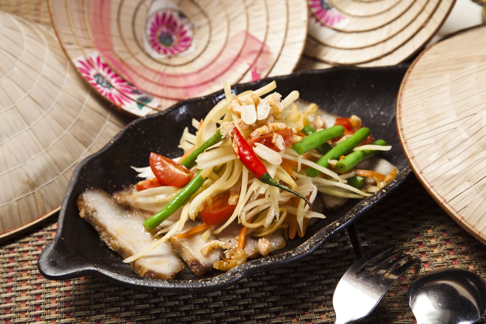 青木瓜沙拉、越南米皮蔬菜春卷、冬阴功老虎虾汤、印度咖喱鸡肉、辣椒柠檬汁蒸鱼一次性来袭!传统技法全部用来自泰国的原材料,精心熬制要选取新鲜大虾,南姜、香茅、香叶、鱼露、椰奶等以精确的比例调制熬煮的冬阴功让人难以抗拒!
