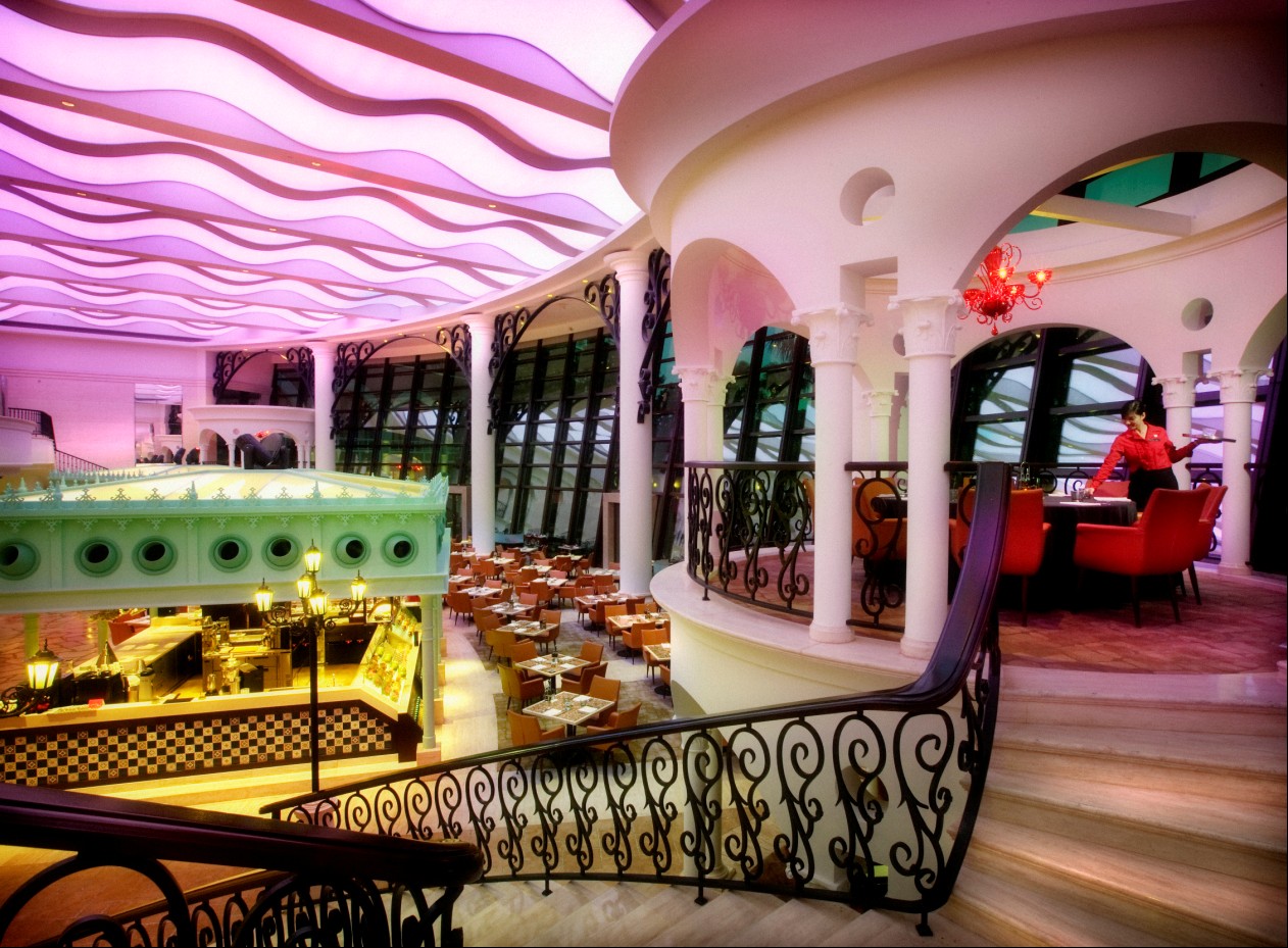 独特的西班牙集市风格搜罗中西知名菜式13个档口,160种美食单品,多位厨师现场烹饪从极鲜生蚝到美味龙虾,从日系料理到香浓芝士锅,从刚出炉的软软餐包,到酒店代表性的手工大面包。你爱吃的,我们都有。