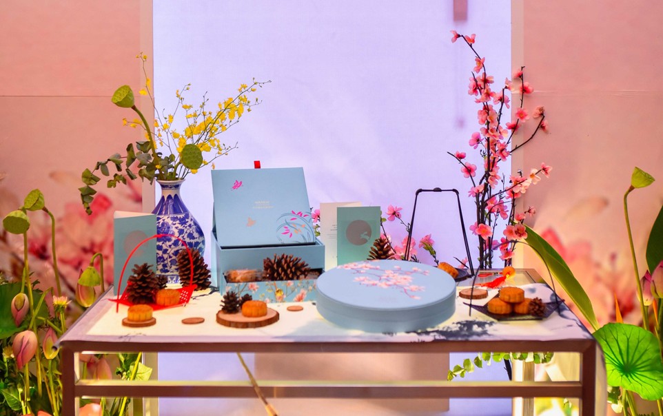 随着一支刚柔并济的中国古典水墨舞,月饼品鉴会正式拉开序幕。精彩的表演过后,身着传统汉服、手持精致中秋月饼礼盒的模特登场,优雅端庄,中华民族源远流长的衣冠美学与传统节日的文化魅力在此完美绽放与融合。