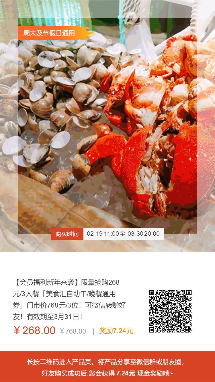 美食汇3人自助午/晚餐(可任意选择午餐或晚餐使用)
