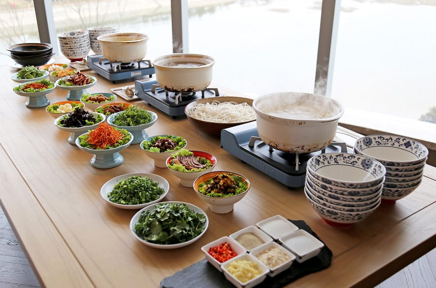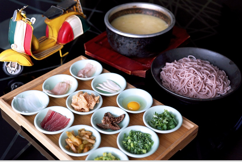 二月,正值云南野生树花结果之季,乐美中餐厅应季推出多味过桥米线。采用传统制作工艺,精选建水红米线和昆明酸浆米线,高汤以老鸡,老鸭,龙骨,宣威火腿,云南野生菌,大火熬制6小时熬制而成 ; 其中具有特色的是配菜的选用,包含金雀花、银雀花、草芽、花枝片野生树花同时与精选肉类及味碟的搭配,使汤头的鲜香浓郁且富有层次,米线软烂而不失弹性,让食客在西安亦可品尝到原汁原味地道的云南过桥米线。