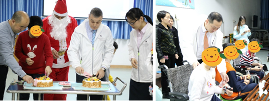 当天下午阳光明媚温暖,活动伴随一阵掌声正式开始:酒店代表与孩子们一起跳手指舞蹈、折纸飞机,笑声不断,互动无间,上一秒还陌生,下一秒就变亲近了。圣诞老人给孩子们派礼物后,马塞尔总经理与福利院曾院长一起为当月生日的孩子切蛋糕庆生。生日庆祝结束,活动也在欢快的祝福声中落下帷幕。