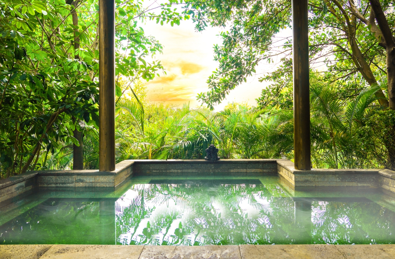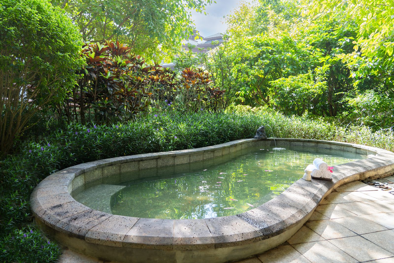 酒店15个天然硅酸矿泉温泉池星罗棋布于后山的热带雨林之间,泡池设有牛奶、红酒、玫瑰、芦荟、薰衣草、迷迭香、桂花、金银花等不同主题,赋予您丰富的温泉体验。