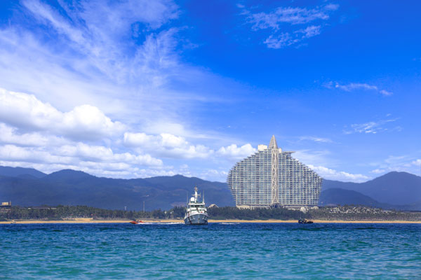 酒店由英国著名的阿特金斯公司担纲设计并由美国ZNA公司建造,和迪拜的帆船酒店一脉相承,捷克的知名艺术家米兰·西派克先生的设计理念贯穿始终,酒店27层由米兰·西派克先生手绘的一千平亚洲最大艺术走廊,酒店大堂也被称作“光影艺术殿堂”。除了优美的海景和极具艺术感的室内外空间环境,酒店的美食也非常值得推荐品尝,有御粤阁中餐厅、保罗的厨房西餐厅、泰餐厅为客人提供本地特色美食及各国珍馐美馔。其中御粤阁中餐厅主打海南本地四大名菜兼顾川湘东北融合菜以及各类生猛海鲜,并且拥有9间全海景包厢。保罗的厨房为廿四小时全日制餐厅,泰餐厅是酒店的网红餐厅,曾连续三年获得泰国商业部泰国大使亲自颁发的“泰精选”餐厅。