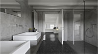 瓷制品仍主导着洗刷台和浴缸,“从酒店的角度来说,易于清洁;从业主的角度来说,成本较低。”