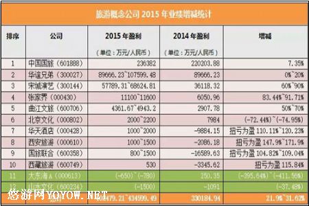 12家旅游企业2015年业绩一览:盈利超40亿
