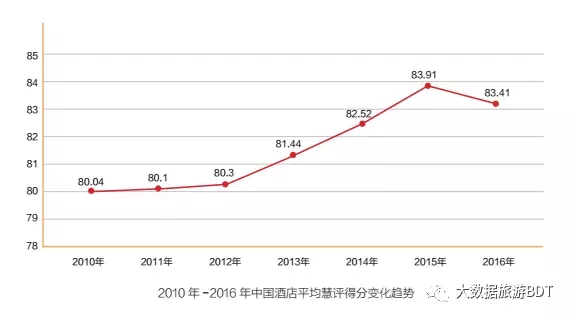 2013年之后酒店积极应对行此的转型和改变,注里消费者的入住体验及感受,从而获得消费者的良好口碑,慧评得分也开始发生质的飞越。2016年慧评得分与2015年相比略有下滑,一方面因为点评量下降导致顾客观点数下降,另一方面2016年表扬率也略有下降。众所周知网络口碑的重要性,做好网络口碑不是短时间内突飞猛进,更需要的是酒店运营者们持之以恒的艰辛经营。