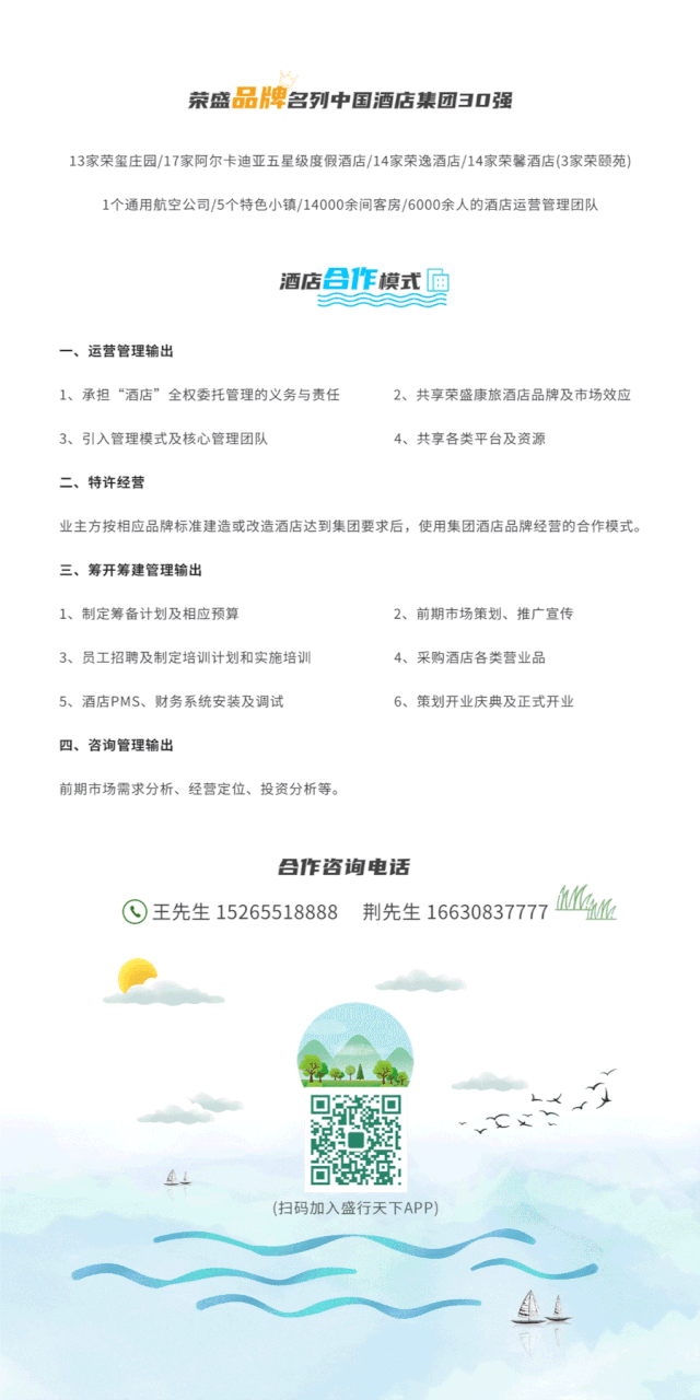 声明:本宣传资料仅为荣盛康旅旗下酒店宣传资料,本文中涉及的环境、景点、交通、商业等其他配套设施,旨在提供相关信息,不代表本公司做出了承诺,本公司保留对宣传资料修改的权利。