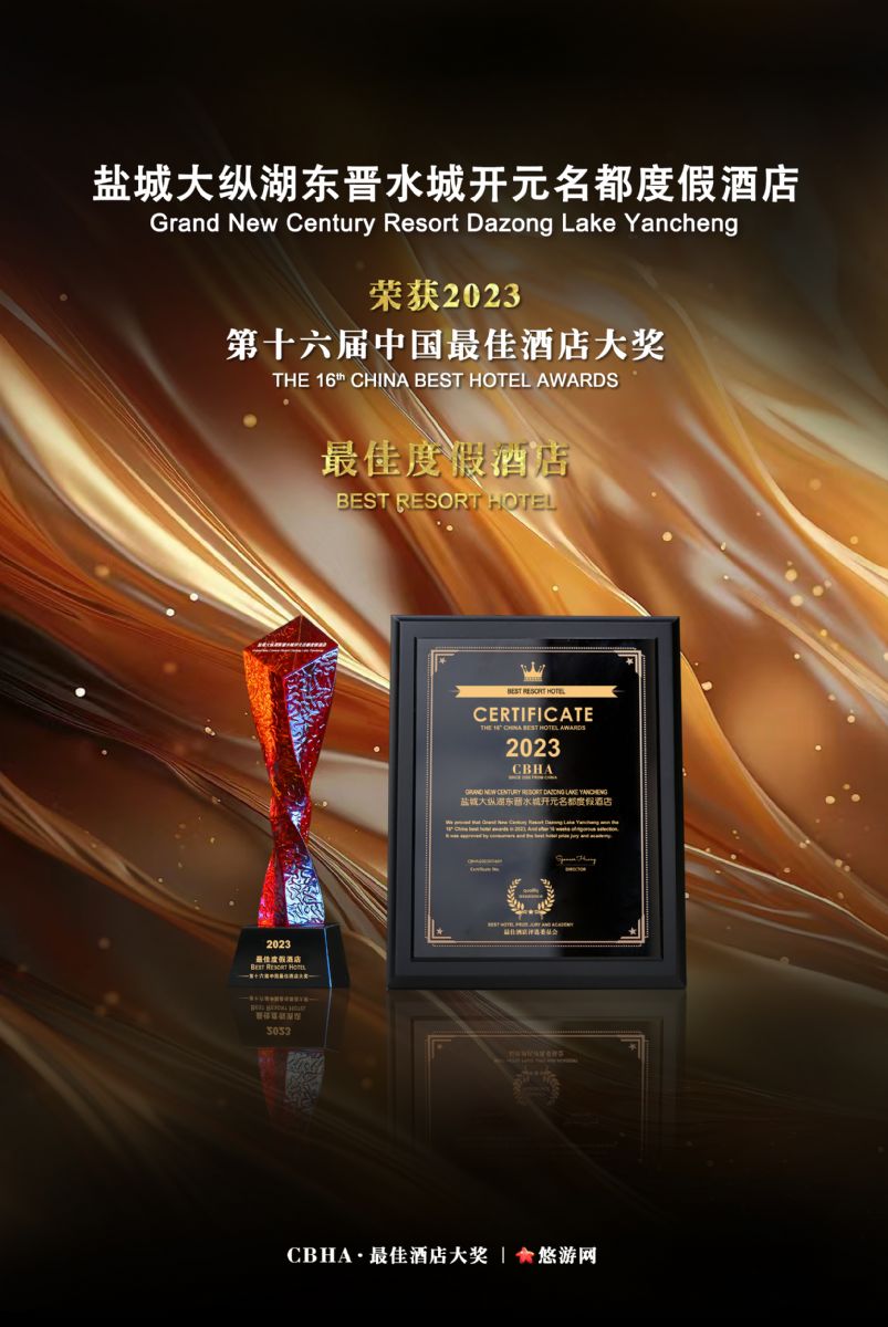 近日,2023第十六届中国最佳酒店大奖评选活动正式落下帷幕,盐城大纵湖东晋水城开元名都度假酒店从众多国内国际品牌酒店当中脱颖而出,荣获2023年度“最佳度假酒店”大奖殊荣。