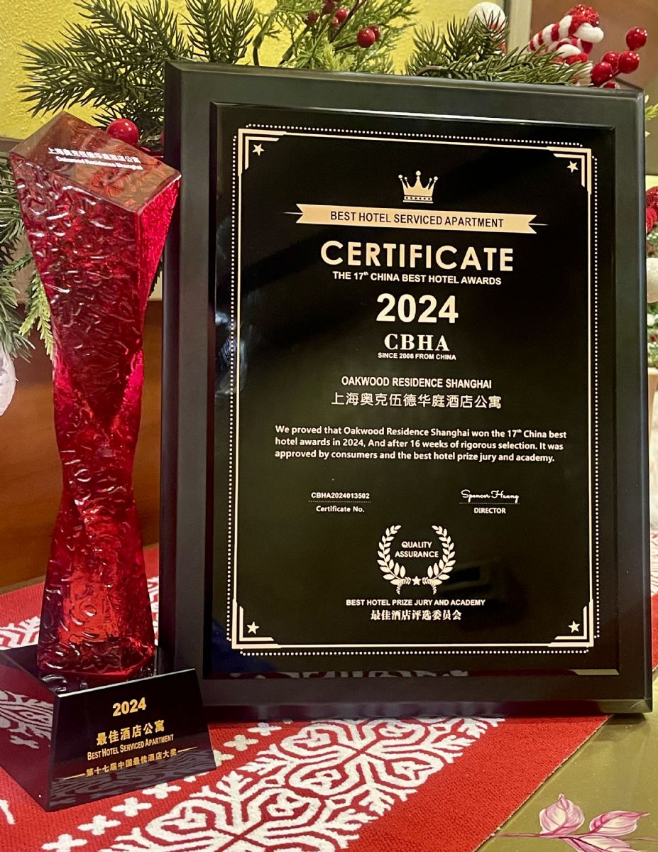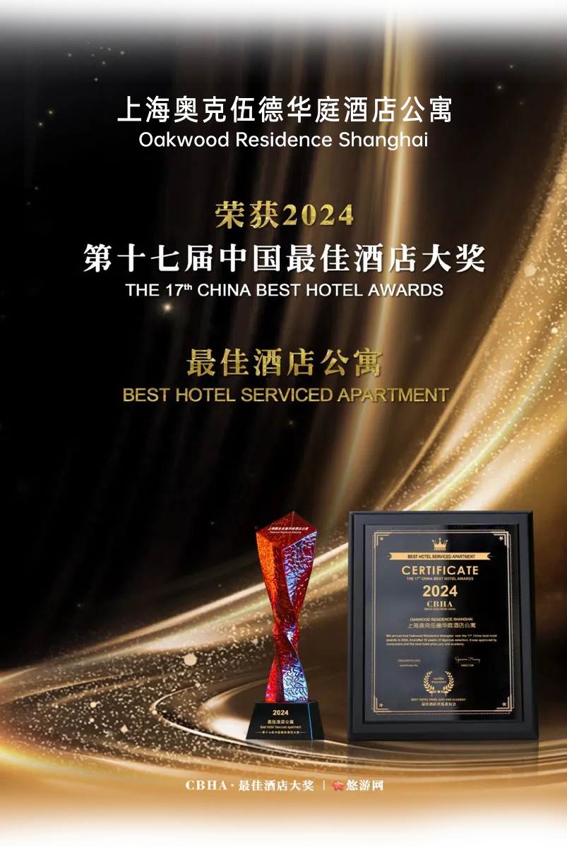 近日,2024第十七届中国最佳酒店大奖评选活动在上海正式落下帷幕,上海奥克伍德华庭酒店公寓从众多国内国际品牌酒店当中脱颖而出,荣获2024年度“最佳酒店公寓”大奖殊荣。