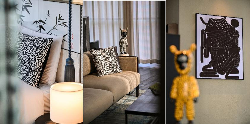 这一艺术构想亦延伸至上海居舍,Juan Díaz-Faes为其精心设计的Studio 90艺术套房,可谓一座宜居的艺术典藏空间。通过壁画、艺术贴纸、定制枕头、沙发靠垫、床尾巾乃至睡袍等细节,这一宜人空间将艺术美学与待客之道融入颇具个人特色的环境中,为旅客打造沉浸式的住宿体验。