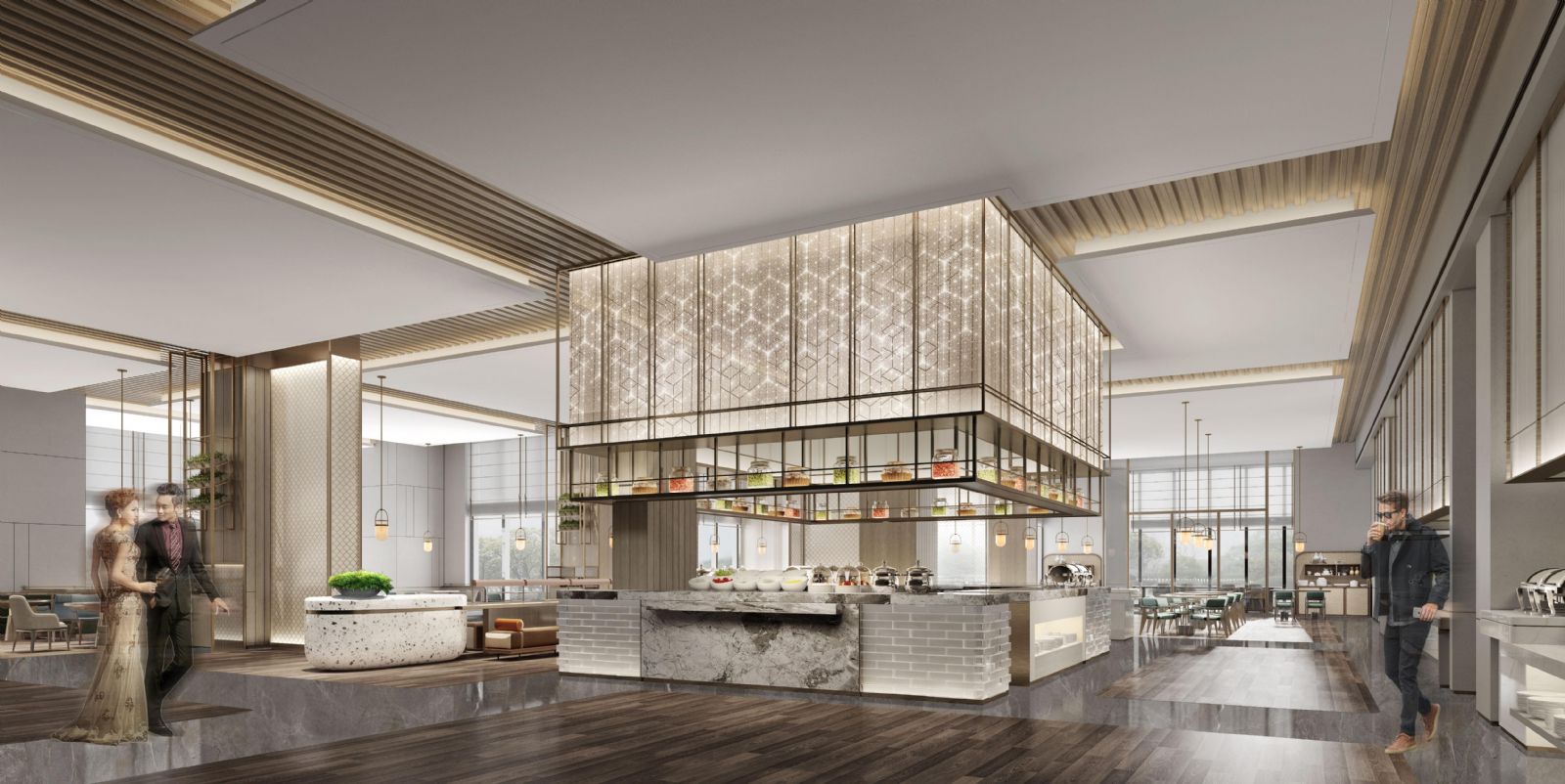 位于酒店一层,步入汇厨全日制餐厅,首先映入眼帘的是开放式厨房,厨师们在这里现场展示烹饪技艺,让食客们能够近距离欣赏美食的诞生过程,增添用餐的乐趣。餐厅内还设有多个特色餐区,从地道的本地风味到异域的特色小吃,每一种美食都经过精心挑选与搭配,满足不同宾客的口味需求。此外,餐厅还提供个性化的点餐服务,根据宾客的喜好和饮食禁忌,量身定制专属菜单,让每一位顾客都能在这里找到属于自己的味蕾盛宴。