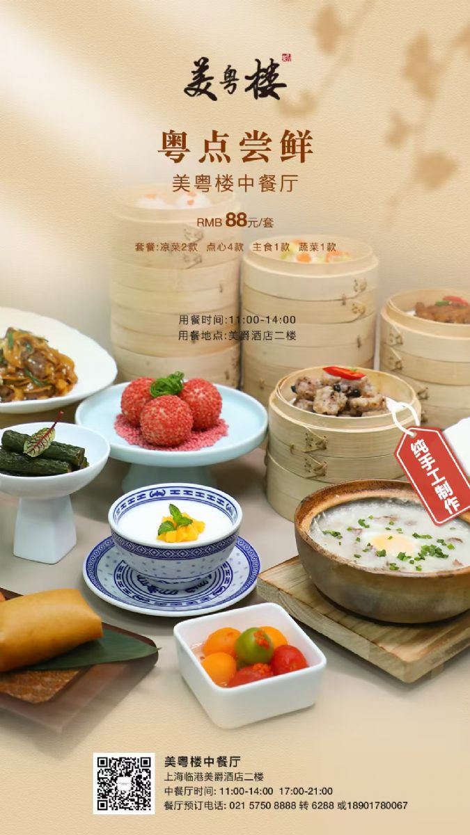 还在为一顿地道粤式茶点纠结价格?上海临港美爵酒店二楼美粤楼直接把诚意拉满——88元就能解锁一桌纯手工粤味,从此实现茶点自由!