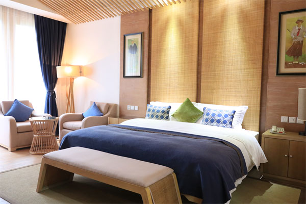 酒店拥有客房236间/套,散布在星罗密布的89套度假别墅和4栋度假公寓中,其中包含79套独栋别墅。其中君澜度假酒店的110间客房临湖而建,中式设计、独栋入户、依山傍湖,散布在岛上的别墅之中,每个房间都有宽阔的空间,均为70平米以上,配备宽敞阳台。