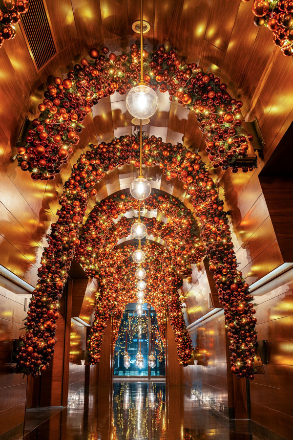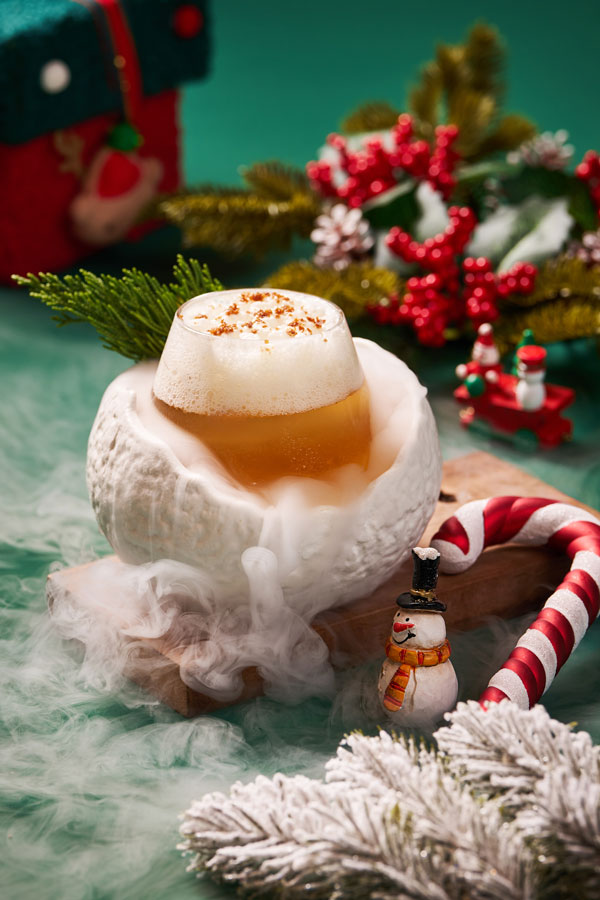 同时,位于酒店四层的1515酒吧限时节日空间——奇迹酒吧(Miracle Bar)升级回归,整个空间以红色与白色的圣诞装饰交织包围,如同梦幻的糖果云朵屋,氛围浓郁。酒吧呈现四款特调鸡尾酒与六款缤纷小食。除了经典的“圣诞热红酒”,调酒师更以传统冬季饮品为灵感,创新演绎出“不同寻常的蛋奶酒”、“圣诞礼物”等鸡尾酒。宾客还可选择搭配牛肋排三明治、南瓜帕玛臣芝士炸饭团等多款风味小食。酒吧还特别推出节日下午茶,烤苹果芝士蛋糕、甜薯蒙布朗挞、薄荷飞鱼籽蟹肉卷、法式酥盒配各式蘑菇等色彩缤纷的咸甜西点分布在圣诞红的下午茶盒中。打开如同礼物盒的下午茶盒,啜饮一杯节日特调饮品,宾客可尽享冬日甜蜜午后。