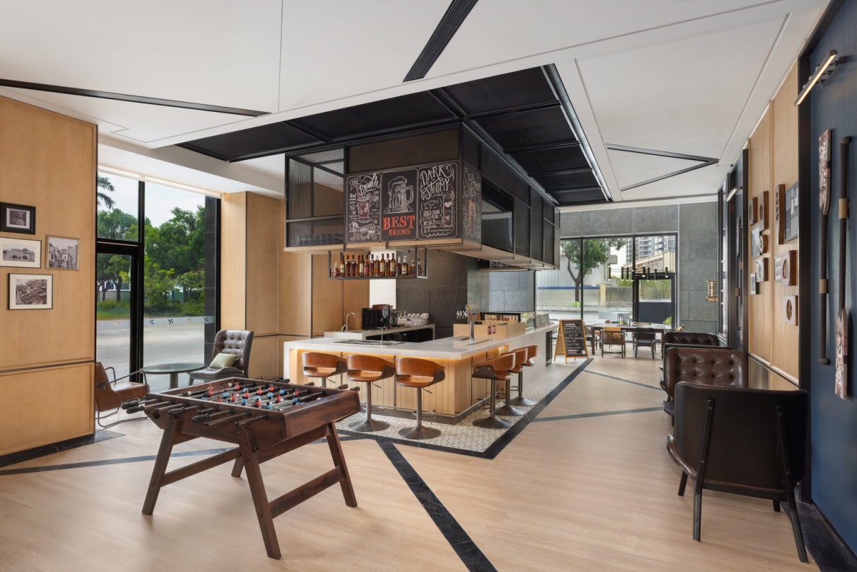 酒店提供多样化餐饮体验。“玩啤食社·餐厅”(The Mesh Restaurant)供应中西式自助早餐、西式经典扒烤及东南亚风味美食,同时提供精致零点服务,更有开放式互动厨房现场烹饪,让宾客享受视觉与味觉的双重盛宴。“玩啤食社·啤”(The Mesh Bar)提供品类丰富的香茗咖啡、精致地方小食,宾客还可在此品饮品牌标志性 “醇饮优选”(Best Brews™)计划甄选的本地精酿啤酒,于数款融入岭南风味的限定精酿中感受悠长广府韵味。