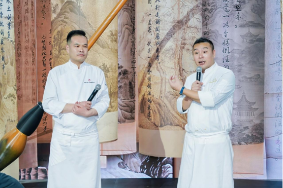 光影流转,意境自成,一场期待已久的风味对话优雅启幕。席间,粤菜的清雅细腻与东北菜的醇厚质朴,在安徽时令风物的巧妙调和下,呈现出层次丰富的味觉叙事。席间菜品皆承载着两位主厨的创作哲思与技艺对话,宾客在品味间不仅体验了风味的精妙融合,更感受到饮食文化深度交流所带来的灵感共鸣。现场氛围雅致而热络,这场持续数小时的星宴,以美食为媒介,完成了一次跨越文化边界的心灵对话。